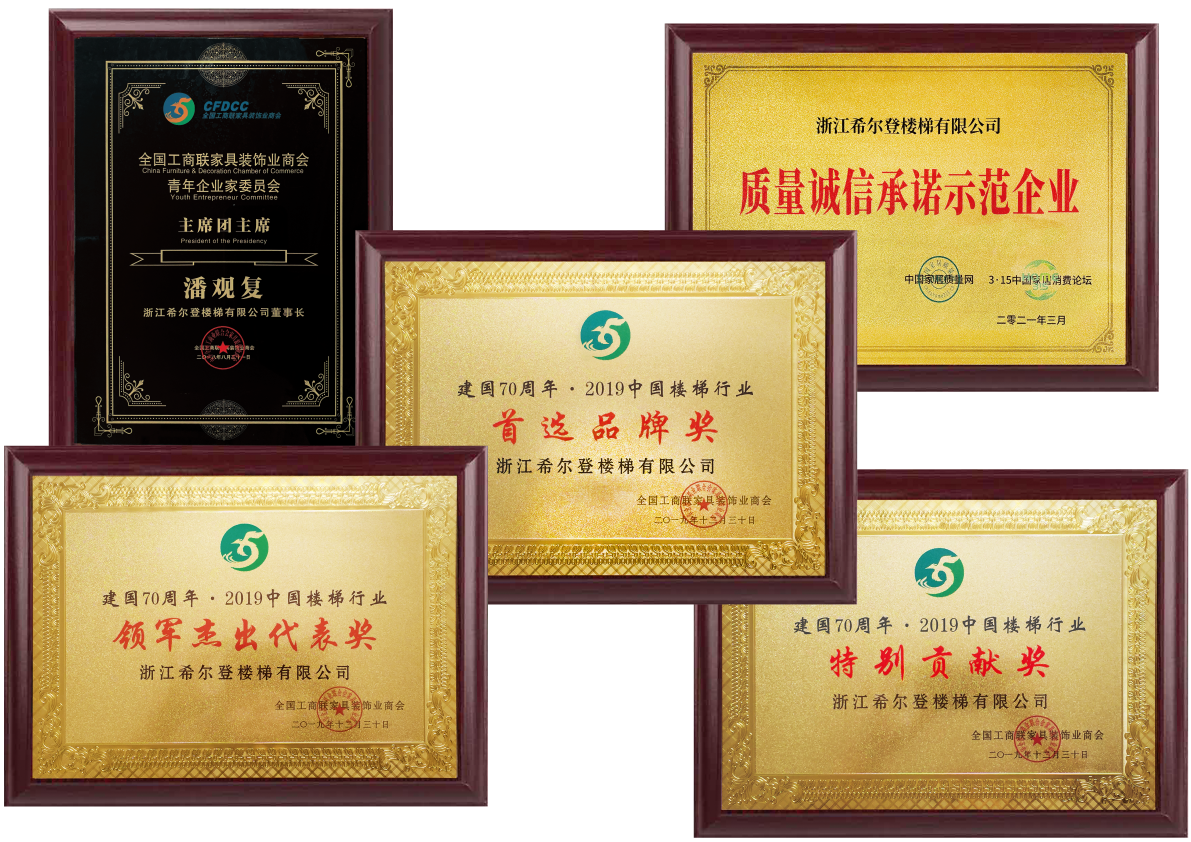 在不斷提升希爾登品牌和企業(yè)實(shí)力的同時(shí),希爾登一直熱心參與樓梯行業(yè)的健康發(fā)展;參與創(chuàng)立全國工商聯(lián)樓梯專委會(huì)并被推選為中國樓梯品牌聯(lián)盟執(zhí)行主席和樓梯專委會(huì)執(zhí)行會(huì)長;憑借在行業(yè)內(nèi)的專業(yè)地位,希爾登參與了《木質(zhì)樓梯》,《木質(zhì)樓梯安裝驗(yàn)收和使用規(guī)范》,《住宅內(nèi)用樓梯》,《建筑用玻璃與金屬護(hù)欄》四個(gè)國家和行業(yè)標(biāo)準(zhǔn)的起草工作。先后榮獲“中國樓梯十大品牌”、“金木樓梯領(lǐng)軍品牌”、“中國泛家居發(fā)展中企業(yè)500強(qiáng)”、“中國家裝行業(yè)金鉆獎(jiǎng)”、“金屬木質(zhì)樓梯一級資質(zhì)”等二十多個(gè)榮譽(yù)和稱號。我們幾乎參與和見證中國樓梯發(fā)展歷程中的所有重大事件。希爾登過去,現(xiàn)在和未來都是中國樓梯的標(biāo)桿企業(yè)。